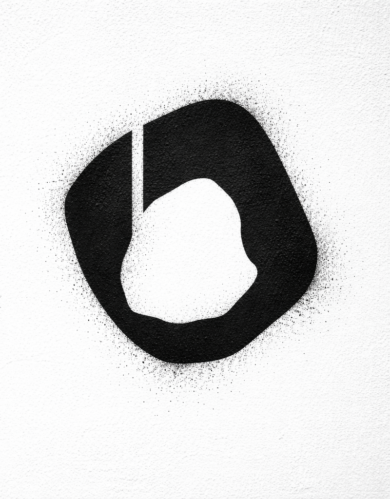 Stencil version of the letter "o" to be applied at future events.